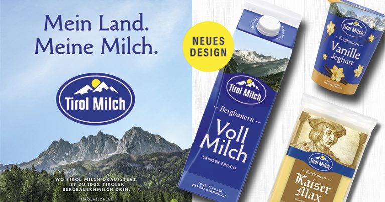 Tirol Milch präsentiert sich in einem modernen, heimatverbundenen Design. .......