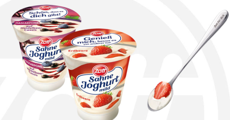 Emotionale Botschaften auf den Sahnejoghurts von Zott....