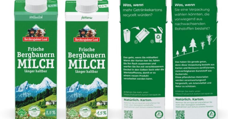 Molkerei Berchtesgadener Land informiert auf den Milchpackungen...