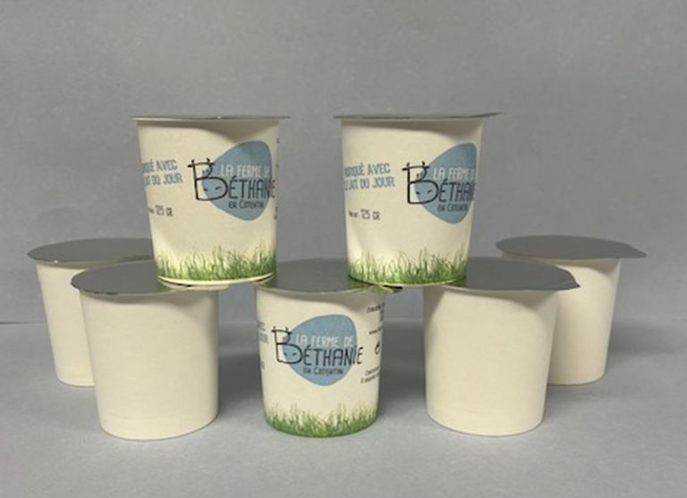 Joghurtbecher aus Fett und Wasser. Guyenne Papier und LFI Emballage...
