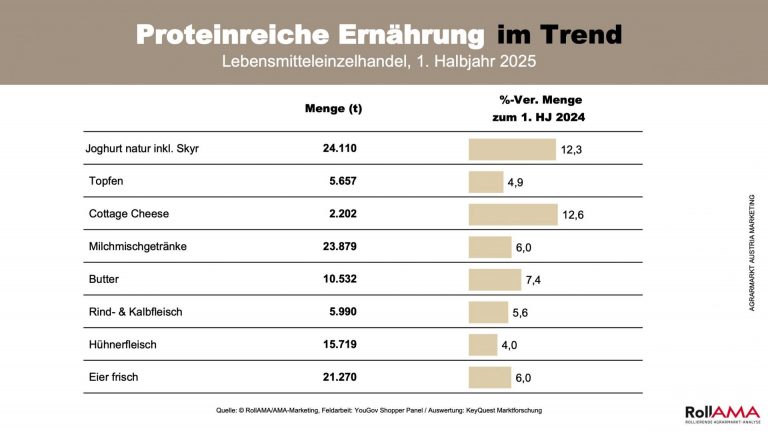 Im ersten Halbjahr 2025 legten proteinreiche, tierische Lebensmittel in Österreich...