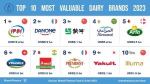 Jedes Jahr stellt das Brand Finance die weltweit größten 5.000 Marken auf den Prüfstand, hieraus werden die 10 wertvollsten Molkereimarken in einer jährlichen Brand Finance Dairy 10 2023 Rangliste eruiert. Die chinesische Marke Yili ist die wertvollste Molkereimarke der Welt mit einem Wert von 12,4 Mrd. USD (+ 17% in 2022). Yili-Produkte sind weltweit in über 60 Ländern auf fünf Kontinenten erhältlich.