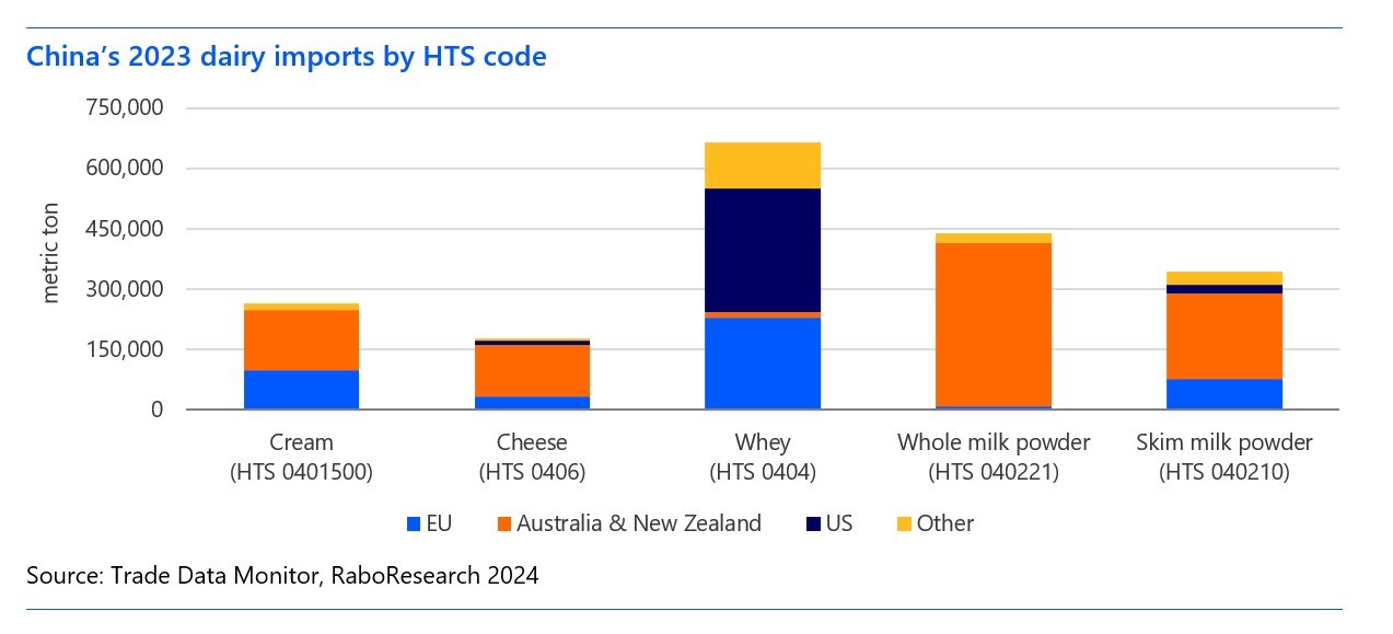 Als Reaktion auf die Entscheidung der Europäischen Union, die Zölle auf chinesische Elektrofahrzeuge zu erhöhen, hat China eine Untersuchung der von der EU und mehreren ihrer Mitgliedstaaten gewährten Subventionen für Milchprodukte eingeleitet. Diese Untersuchung, die sich auf die Gemeinsame Agrarpolitik der EU und die nationalen Pläne von acht Ländern konzentriert, könnte die Landschaft des globalen Milchhandels umgestalten. Verschärfte Handelsspannungen könnten den Milchexporteuren aus Australien, Neuseeland, dem Vereinigten Königreich und den USA zugute kommen, während sie für die europäischen Exporteure eine Herausforderung darstellen. Ein aktueller Bericht von RaboResearch geht davon aus, dass die Auswirkungen auf den Markt nicht vor 2026 zu spüren sein werden – wenn überhaupt.