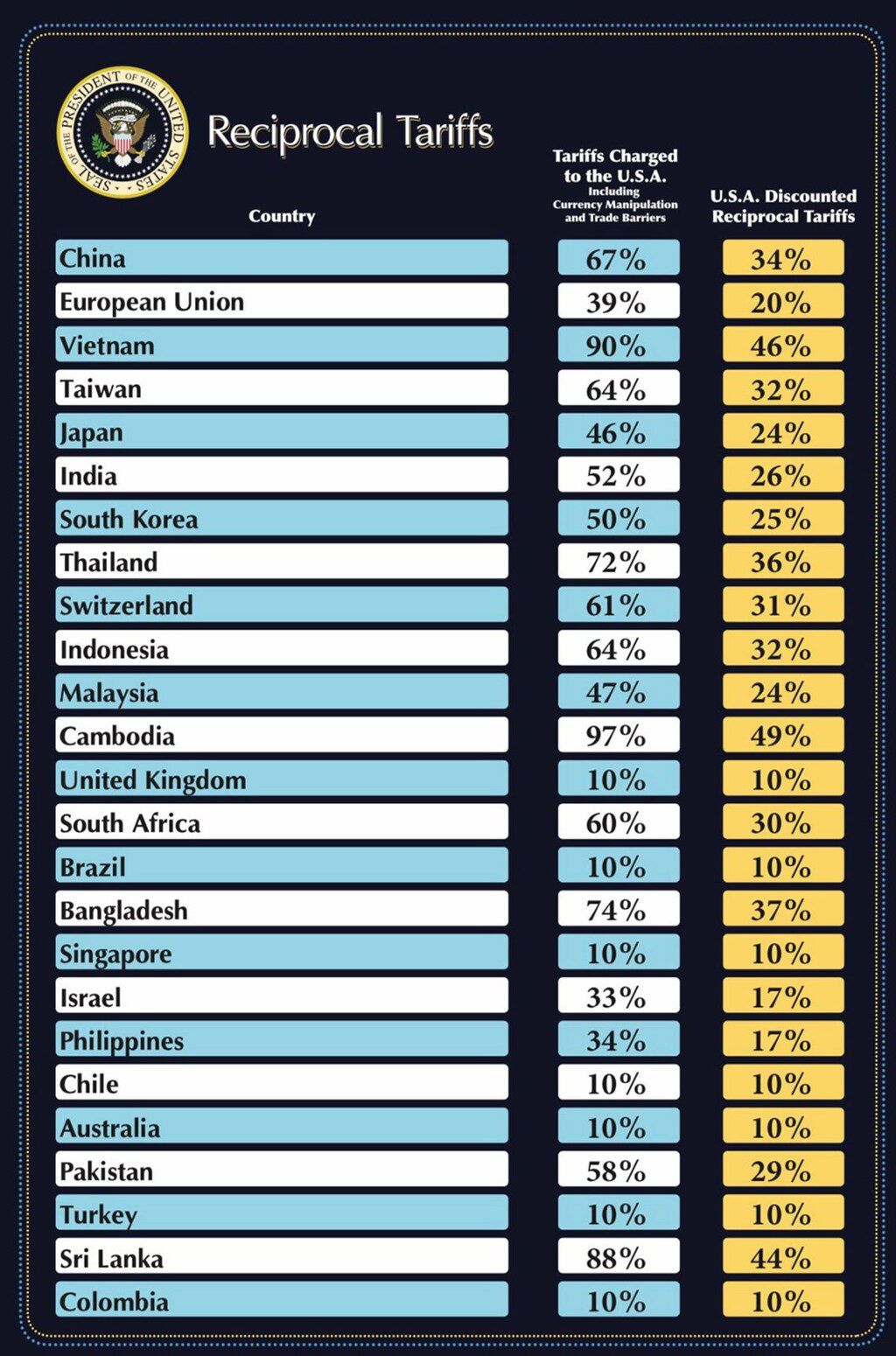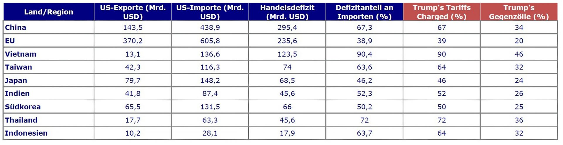 Tabelle zu Trumps Zollformel, Quelle: Kloepfel Group