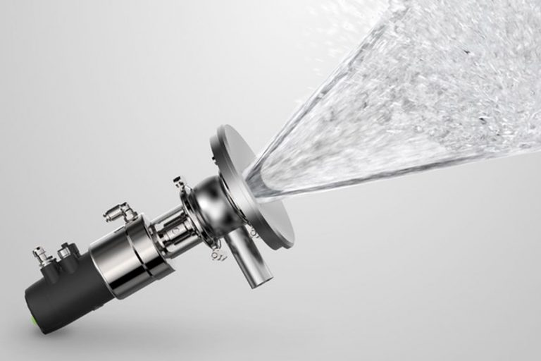 Der mechanisch kraftvolle Vollkegelstrahl trifft gezielt auf die Unterseiten der Rührwerke und entfernt Rückstände effizient. „Anders als bei alternativen Retraktoren, die oft einen Hohlraum in der Mitte aufweisen oder mit einem Fächerstrahl arbeiten, ist unser Sprühstrahl ein Vollkonus“, erläutert Jana Zimpel, Produkt-Sales-Managerin für Reinigungstechnologie bei GEA.