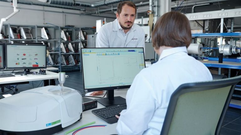 Mit der IR-Spektroskopie kann LEIBINGER präzise die Materialklasse des zu bemusternden Produkts bestimmen. Mit etwas Fingerspitzengefühl lassen sich zudem teilweise auch Zusatzstoffe im Material identifizieren. Das ist entscheidend, um die optimale Tinte für das Material auszuwählen, da sich die spezifischen Eigenschaften von Tinte und Material gegenseitig beeinflussen. Um die Oberflächeneigenschaften der Materialien zu verändern und die Haftung der Tinten zu optimieren, werden die Materialien bei Bedarf direkt im Application Center mit Verfahren wie Corona oder Plasma vorbehandelt.