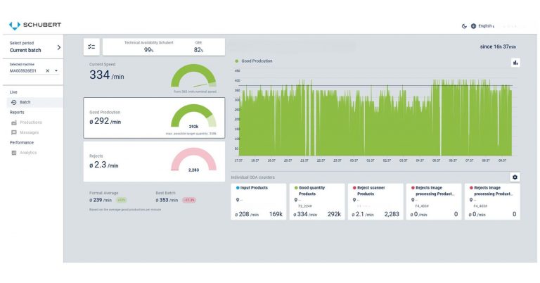 Neumaschinen verfügen seit 2025 serienmäßig über eine Schnittstelle zum neuen CARE-System; Bestandsmaschinen passt Schubert schrittweise an. Seit 2022 ist CARE eine feste Größe im digitalen Serviceportfolio des Verpackungsmaschinenherstellers. Die Online-Maschinenplattform bietet Nutzern volle Transparenz über die Leistung ihrer Anlagen. Über Schnittstellen zu den Maschinen, darunter Scanner zur Qualitätskontrolle, bezieht CARE beispielsweise Informationen zu Produktionsgeschwindigkeit, Betriebszeit, Ausschuss und Durchsatz. Auch die Steuerung liefert wichtige Daten – eine Besonderheit bei Schubert, die den Detailgrad der Daten wesentlich steigert. Diese fasst das System übersichtlich in einem Dashboard zusammen. Über ein Webportal können Kunden sämtliche Werte einsehen – und erhalten dabei künftig noch präzisere Einsichten.