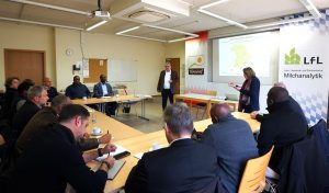 LVFZ-Leiter Uwe Mohr präsentierte der Delegation die wichtigsten Informationen rund um das LVFZ für Milchanalytik und der angegliederten Staatlichen Fachschule für Agrarwirtschaft, Fachrichtung Milchwirtschaftliches Laborwesen und stand für Fragen zur Verfügung. Besonders viele Fragen tauchten zur Struktur, Organisation und Finanzierung der Überbetrieblichen Ausbildung und der Fachschule auf, da sich die Delegation sichtlich überrascht über unser einzigartiges System der beruflichen Bildung zeigte. Das Ziel des Besuchs, mögliche Perspektiven zur Weiterentwicklung des angolanischen Agrar- und Lebensmittelsektors aufzuzeigen, konnte so am LVFZ für Milchanalytik eindrucksvoll verwirklicht werden.