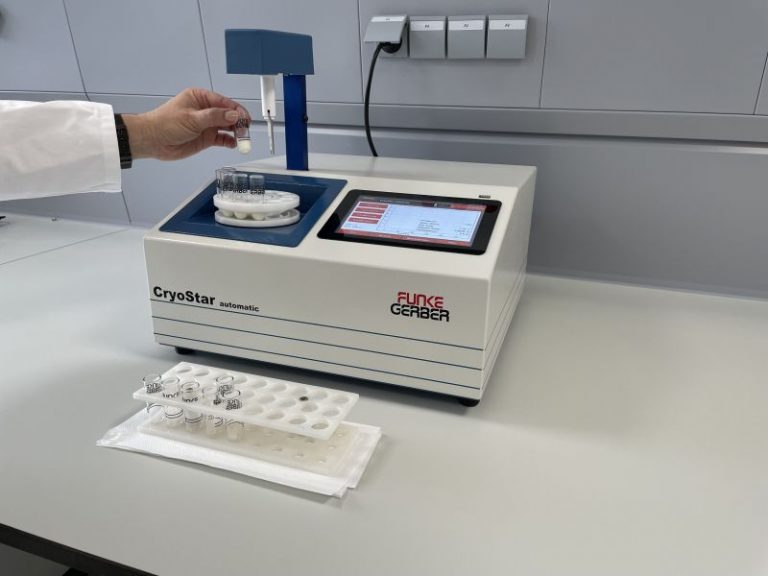 Funke-Gerber hat sein Kryoskop CryoStar automatic verbessert. So arbeitet das Gerät bei 40 °C Raumtemperatur schnell und zuverlässig. Der neu hinzugefügte Drucksensor warnt bei Druckschwankungen, sodass es nicht zu unerwünschten Abweichungen im Messverlauf kommt. Alle Einstellungen sowie Messverläufe lassen sich über das Touch-Display vornehmen und einsehen.