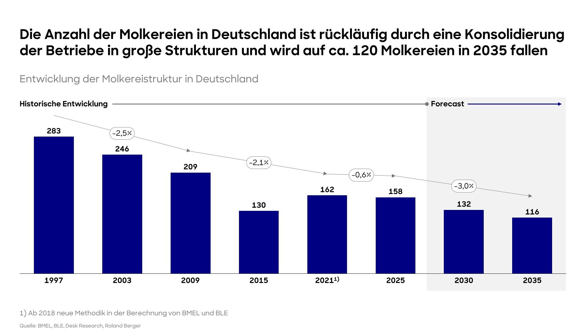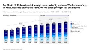 „Um ihre Zukunftsfähigkeit sicherzustellen, ist es für Molkereien fundamental, künftiges Wachstum durch strategische Partnerschaften, milchnahe Diversifikation, anorganisches Wachstum und gezielte Internationalisierung in dynamische Märkte sicherzustellen“, sagt Tobias Kramolowsky, Director bei Roland Berger.  Ein Exportanteil von 30 bis 50 Prozent sollte für überregionale Molkereien strategisches Ziel sein. Bei der Ausfuhr von Käse ist Deutschland schon heute Spitzenreiter.