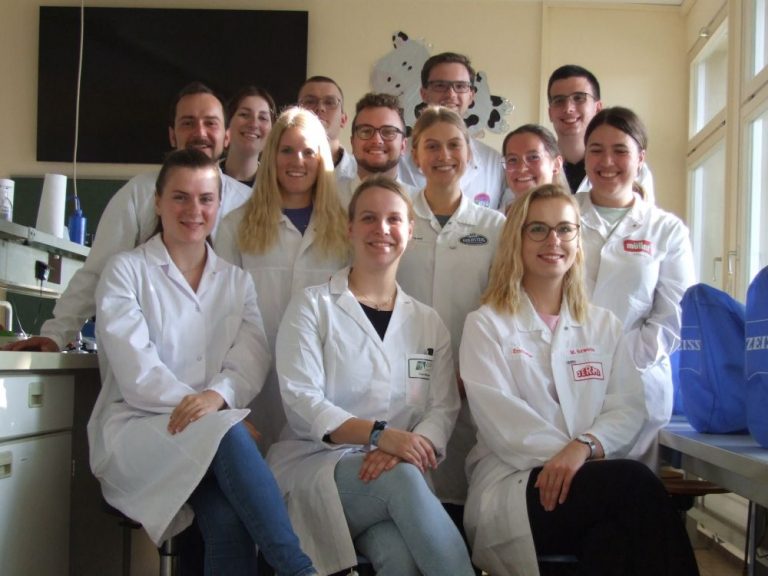 Bei den Studierenden an der am LVFZ angegliederten Staatlichen Fachschule für Agrarwirtschaft, Fachrichtung Milchwirtschaftliches Laborwesen ist das Klassenzimmer mit 13 Fortbildungswilligen (Foto 1) lernfreundlich besetzt. Diese fanden sich am 10. September ein, um die umfassenden Möglichkeiten zur Entwicklung der beruflichen sowie persönlichen Kompetenzen sowie zur Erlangung der fachlichen Ausbildereignung zu nutzen. Ein erfolgreiches Bestehen dieser deutschlandweit einzigartigen Fortbildung inklusive Meisterprüfung bedeutet für die ebenfalls intensiv am Arbeitsmarkt umworbenen Nachwuchskräfte, die höchste Stufe der beruflichen Bildung zu erlangen. Gleich drei Titel dürfen dann im Lebenslauf aufgeführt werden: Abschluss als Meister, als Staatlich geprüfter Wirtschafter und als Bachelor Professional im Milchwirtschaftlichen Laborwesen.