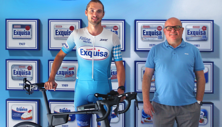Ein Mitarbeiter der Käserei tritt bei der Triathlon-WM in Nizza...