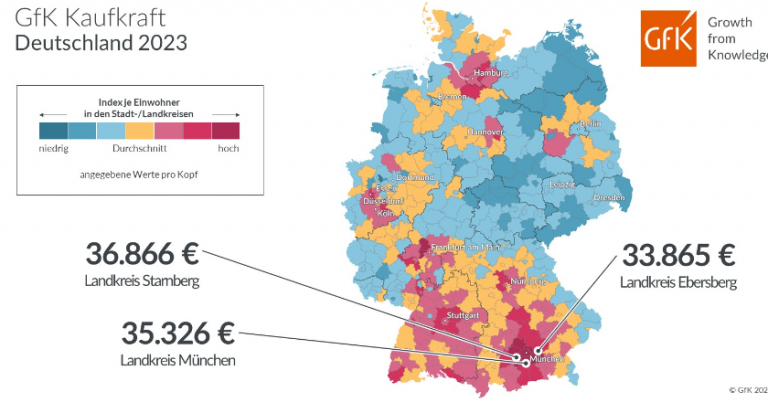 GfK bildet aktuelle regionale Verteilung der Kaufkraft in Deutschland ab....