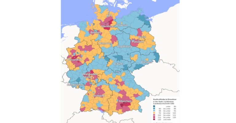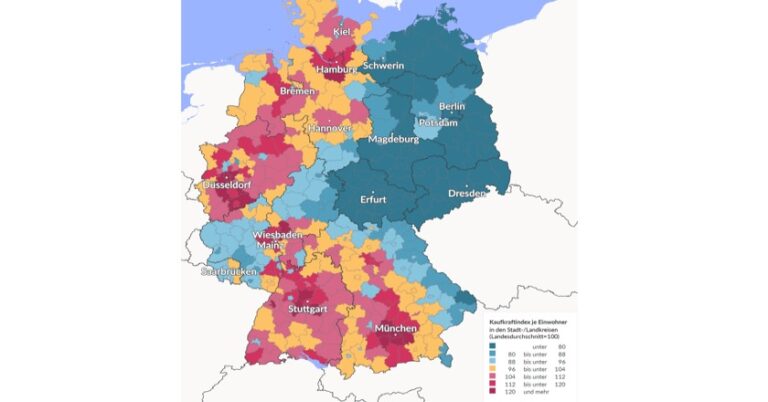 Kaufkraftstudie der GfK zeigt die geografischen Konsumschwerpunkte der weißen Linie...