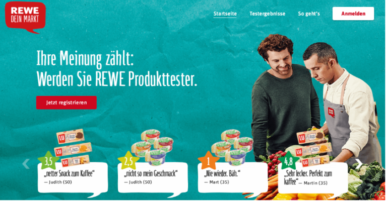 Bei der Rewe können sich Konsumenten als Testpersonen für Lebensmittel...
