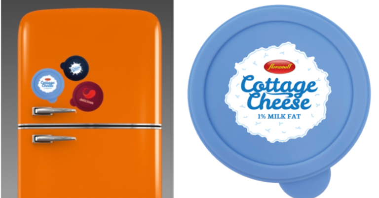 Ein magnetischer Deckel für Joghurt-Becher wirbt für sich und ein...