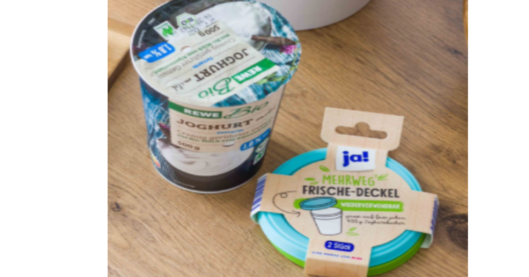 Rewe verzichtet bei seinen eigenen Naturjoghurt-Bechern auf den Plastikdeckel...