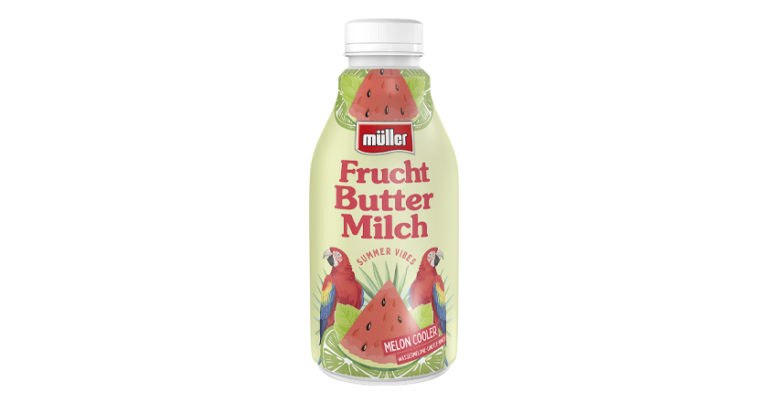 Die Molkerei Müller bringt unter dem Namen „Frucht Buttermilch Summer Vibes“ neue limitierte Sommersorten ins Kühlregal. Zu haben sind die Geschmacksrichtungen Melon Cooler, Peach Royal, Tropical Kiss und Mango Tango. Die 0,5-l-Flasche kostet je 1,09 Euro.