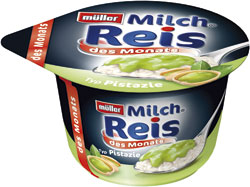 Die Molkerei Müller präsentiert mit dem Milchreis Typ Pistazie einen...