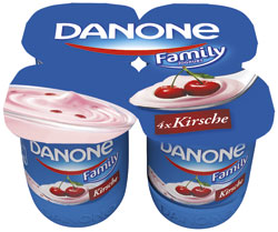 Danone präsentiert die Joghurtlinie Danone Family im neuen, sogenannten Kissbecher....