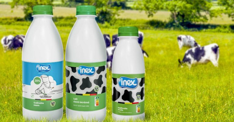 Die neue PET-Verpackung für die H-Milchprodukte von Inex (Vollmilch, entrahmte Milch usw.) in 0,5- und 1-l-Flaschen hebt sich im Vergleich zu herkömmlichen Kartonverpackungen von der Masse ab. Die weiße PET-Flasche ist lichtundurchlässig und sorgt damit ohne Aluminiumfolie für eine lange Haltbarkeit und die Integrität der Produkte. „Die neue PET-Flasche enthält mindestens 25 % Recycling-PET, ist 20 % leichter als andere Kunststoffflaschen aus PE und weist damit einen um 20 % kleineren CO2-Fußabdruck auf“, erläutert Dierickx.