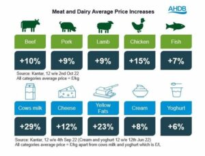 Neun von zehn britischen Verbrauchern haben festgestellt, dass die Lebensmittelpreise in den Supermärkten gestiegen sind, wobei 62 % über die Lebensmittelkosten besorgt sind (AHDB/ Blue Marble Trust Research 2022). Dies ist nicht überraschend, da die Inflation bei Lebensmitteln und alkoholfreien Getränken im September 14,6 % erreichte (ONS).